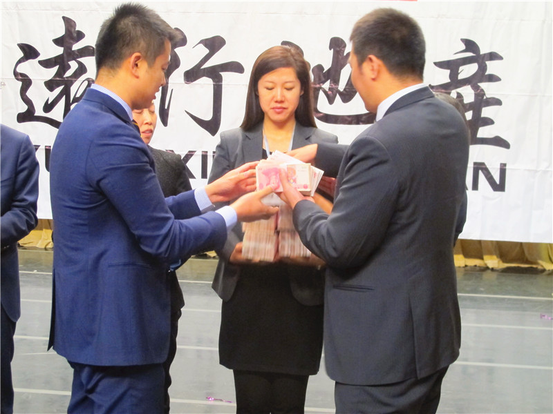 “嚯——”這樣的驚嘆聲是在“經(jīng)理季度收入展示”環(huán)節(jié)出現(xiàn)頻率最高的詞語。當?shù)谌径扰琶?名的經(jīng)理站在舞臺上領取季度提成,當他們各自三個月的收入分別從20萬過渡到45萬,再攀增到68萬,現(xiàn)場已經(jīng)全部被這近300萬的現(xiàn)金提成震撼到了!但是,這個數(shù)字不只是“300萬”如此簡單,它是遠行6年風雨,歷經(jīng)坎坷而堅挺不倒的最好見證,是全體遠行人“一群人,一條心,一輩子,一件事”共同信念可以被時代銘記的完美佐證,更是公司深入實施并不斷升級合伙人制度模式,深入踐行“共同創(chuàng)造、共同分享”核心文化的物質(zhì)結(jié)晶!我們用事實再次證明了這個平臺是一個可以實現(xiàn)夢想的地方!